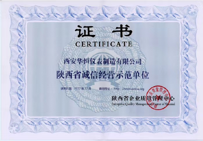 西安華恒儀表制造有限公司:榮譽(yù)證書