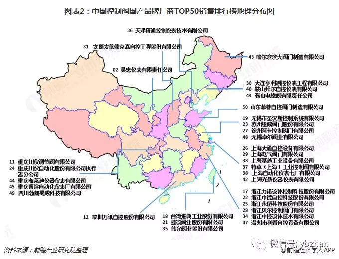 我國(guó)控制閥行業(yè)領(lǐng)先國(guó)產(chǎn)品牌基本分布在東部地區(qū)