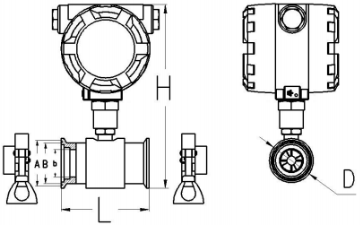 | 卡箍壓力變送器|生物制藥|醫(yī)藥清潔壓力變送器連接渦街流量計(jì)尺寸圖 |