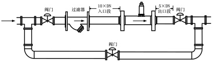 (2)水平安裝傳感器要求管道不應(yīng)有目測(cè)可察覺(jué)的傾斜(一般在5°以內(nèi)),垂直安裝傳感 器管道垂直度偏差亦應(yīng)小于 5°。在不能停流的場(chǎng)所,應(yīng)裝旁通管和可靠的截止閥,測(cè)量時(shí)要確保旁通管無(wú)泄漏。