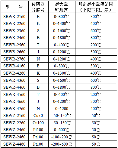 三、溫度變送器型號(hào)和類別